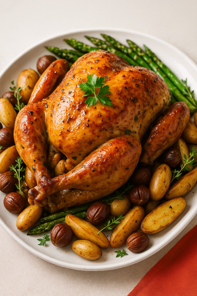7. Remove Foil & Crisp the Skin: Increase oven temp to 400°F (200°C). Brush more herb butter on top. Roast uncovered for another 30–45 minutes, or until the internal temperature reaches 165°F (74°C) in the thickest part of the breast.